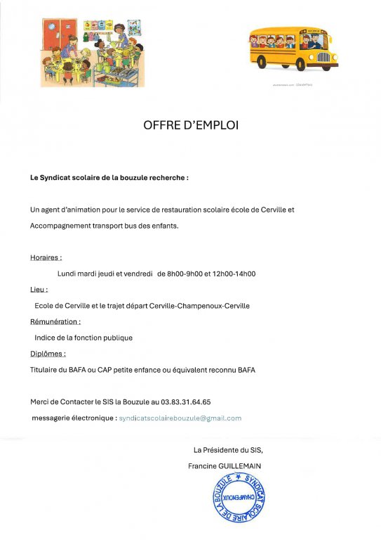 👉Le SIS (syndicat intercommunal scolaire) de la Bouzule recrute.